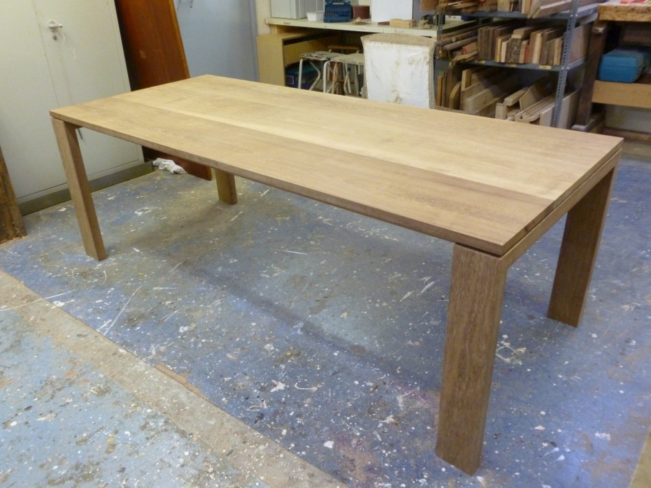 van een partij hout van zolder kon ik nog een tafel maken. Dit afrikaanse hardhout had bepaalde afmetingen en die heb ik mee laten bepalen in het ontwerp.